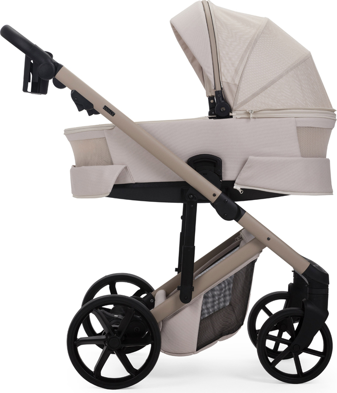 - Tento model sa vyznačuje plne odnímateľnou látkovou časťou striešky vaničky, ktorá je zospodu tvorená vzdušnou moskytiérou. Okrem toho má vanička dva vetracie otvory na zips (vpredu a vzadu).