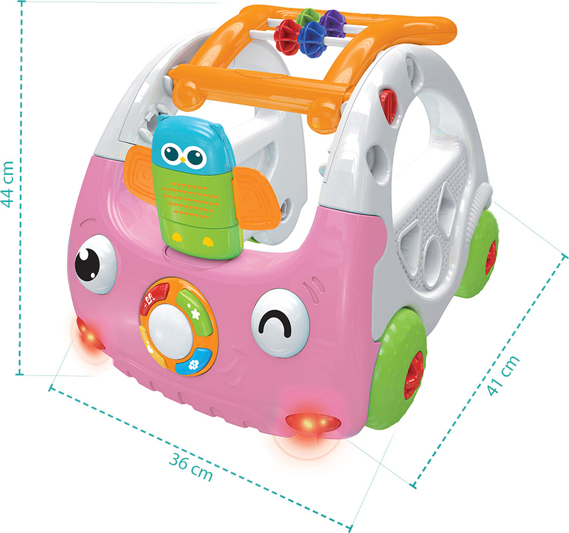 Roztomilé chodítko v tvare autíčka bezpečne prevedie dieťa prvými krôčikmi. Od 6 mesiacov slúži ako interaktívna hračka. Na boku chodítka sú umiestnené aktivity kocky, ktoré rozvíjajú motoriku a fantáziu. Ďalej je chodítko vybavená skladačkou či počítadlom. Súčasťou je aj interaktívny kľúč s tlačidlami, vďaka ktorým autíčko vydáva zvuky a svetelné efekty.