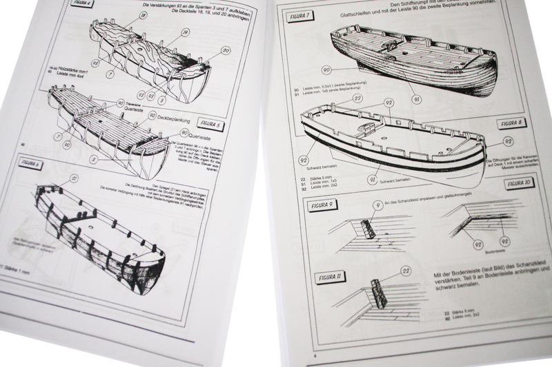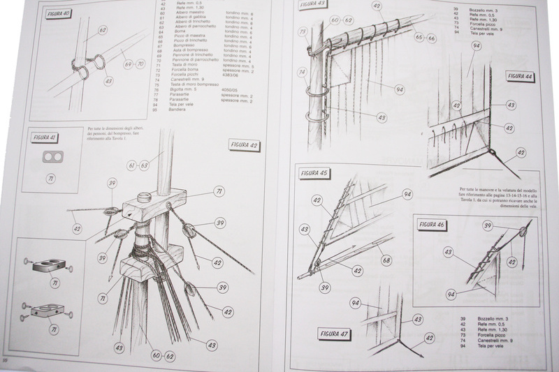 Set obsahuje kompletnú sadu výkresovej dokumentácie modelu v mierke 1:1 s obrázkami jednotlivých detailov. Na výkrese sú v mierke nakreslené montážne zostavy, ich kompletizácia a to vrátane sťažňov a ráheň a spôsob viazania lanoviek. Viacjazyčný postup stavby rámcovo upravuje logické zostavenie jednotlivých komponentov.