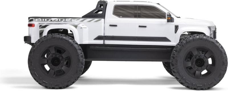 Monster truck ARRMA ® BIG ROCK ™ 6S BLX RTR v mierke 1:7 je navrhnutý pre rýchlu drsnú jazdu bez kompromisov. Je vybavený šasi z čierne eloxovaného hliníka so silnými bočnými ochrannými krytmi z kompozitného materiálu proti nečistotám, stredovou výstuhou a šikmými vzperami pre maximálnu odolnosť. Odolné hnacie ústrojenstvo zahŕňa celokovové ozubené kolesá diferenciálov a prevodovky. V celom ústrojenstve sú použité oceľové hnacie hriadele.