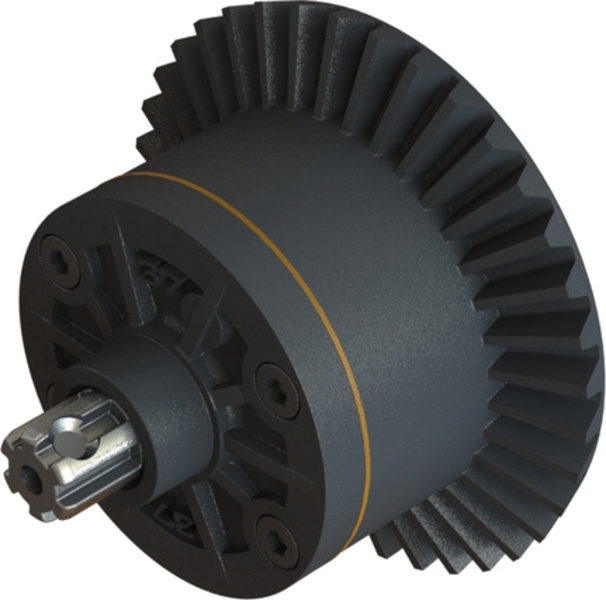 Náhradný diel RC modelu auta Arrma Kraton 4S BLX a Outcast 4S BLX: diferenciál kompletný 37 zubov, modul M1,35. Odporúčaná hustota oleja 10,000cSt. Zmontovaný a naplnený olejom, húževnaté vnútorné ozubené kolesá s priamymi zubami, pevné zložené difúzne skriňa s integrovaným kužeľovým prevodom 37T pre zvýšenú odolnosť pri extrémnom zaťažení. Špeciálne navrhnutý uzáver pre zvýšenú pevnosť a odolnosť.