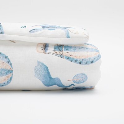 Set obsahuje vankúšik a perinku s potlačou rozprávkového dobrodružstva v oblakoch. Všetko je vyplnené antialergickým vláknom.