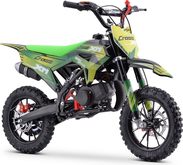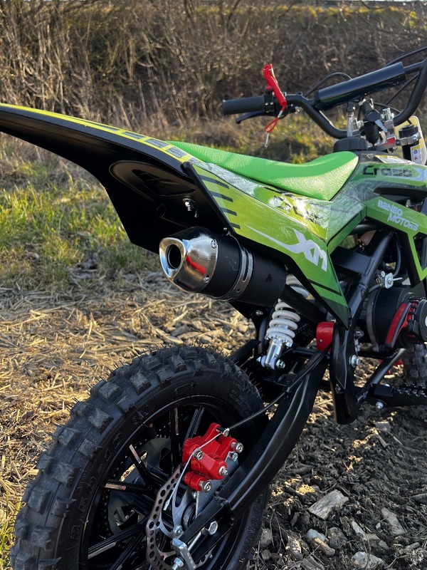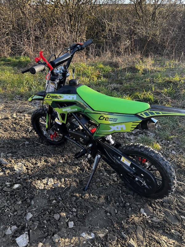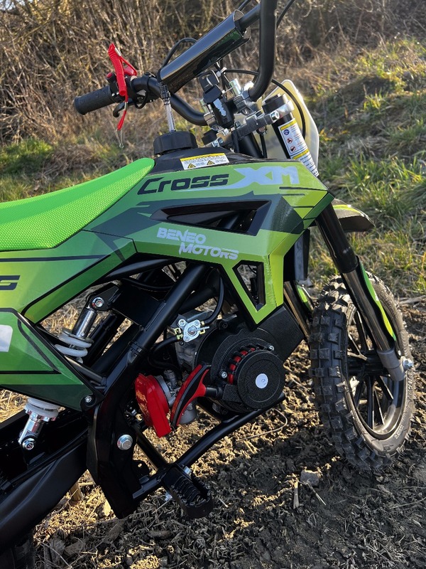Beneo Motors CROSS XM 50 cm3 Veková hranica: od 4 rokov VÝKON: 1,5 kW Predstavujeme Beneo Motors CROSS XM – výkonný a ľahko ovládateľný motocross, ktorý je ideálnym vozidlom pre každého, kto túži po dobrodružstvách mimo asfaltových ciest. Cross XM je vynikajúci model s výkonom, ktorý je ideálny pre mladých jazdcov, ktorí ešte nemajú skúsenosti, ale sú pripravení osvojiť si nové jazdné schopnosti a zažiť vzrušenie z jazdy v teréne. Ľahký, ľahko manévrovateľný a veľmi kompaktný, CROSS XM je ideálny pre deti vo veku od 4 do 8 rokov.Ideálny na bezpečný začiatok jazdy na motocykli. Tento model je dokonalý pre začiatočníkov. Je vybavený obmedzovačom rýchlosti akcelerácie, prednými a zadnými kotúčovými brzdami, krytom výfuku a ochranou reťaze. Vysoká výbava robí tento model ideálnym pre rodičov, ktorí chcú sledovať pokrok svojich detí v bezpečných podmienkach. Je vybavený 50cc 2-taktným motorom s automatickou prevodovkou a najnovším systémom EASY START so zosilneným hliníkovým štartérom. Akcelerátor plynu sa dá nastaviť na 3 rôzne polohy, čo umožňuje znížiť akceleráciu motocykla.
