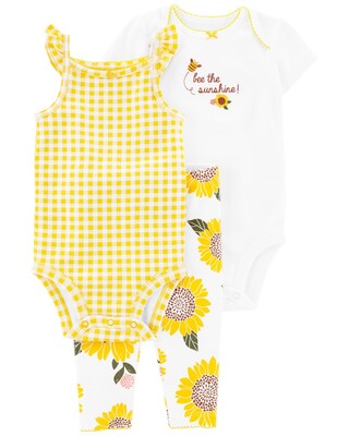 CARTER'S Set 3dielny legíny, body kr. rukáv, body na ramienka Yellow Sunflower dievča 18m
