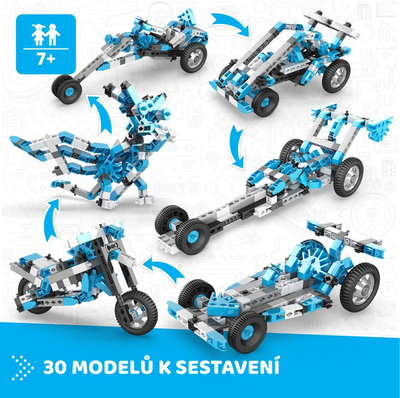 • Stavebnica Maker Master 30v1 obsahuje: 210 dielov a zostavíte si z nich 30 úžasných hračiek ako vesmírnu raketu, lunárny vozík, zimný skúter, formulu, motorku a mnoho ďalších.