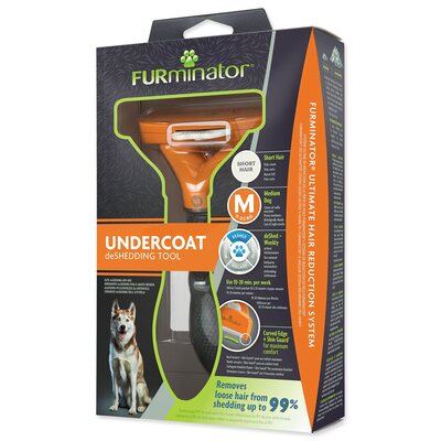 FURminator® hrebeň na vyčesávanie podsady pre psov stredných plemien s hmotnosťou do 9-23 kg s krátkou srsťou. Odstraňuje až 99% uvoľnených chlpov.