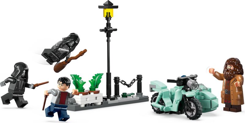 Pretvorte si útek Hagrida a Harryho z Privátnej cesty pred Smrťožrútmi z filmu Harry Potter a Dary smrti s touto hračkárskou motorkou LEGO® Harry Potter™ (76459) pre deti. Táto kúzelná stavebnica je zábavným malým darčekom na narodeniny pre chlapcov, dievčatá a všetkých fanúšikov od 8 rokov. Obsahuje prvý model LEGO Hagridovej lietajúcej motorky v mierke minifigúrok, 4 minifigúrky LEGO Harry Potter a miniatúrny model Privátnej cesty, ktorý inšpiruje kreatívne hry. Umiestnite minifigúrku Rubeusa Hagrida na motorku a Harryho Pottera posaďte do postranného vozíka. Doplňte do scénky na Privátnej ceste 2 minifigúrky Smrťožrútov.