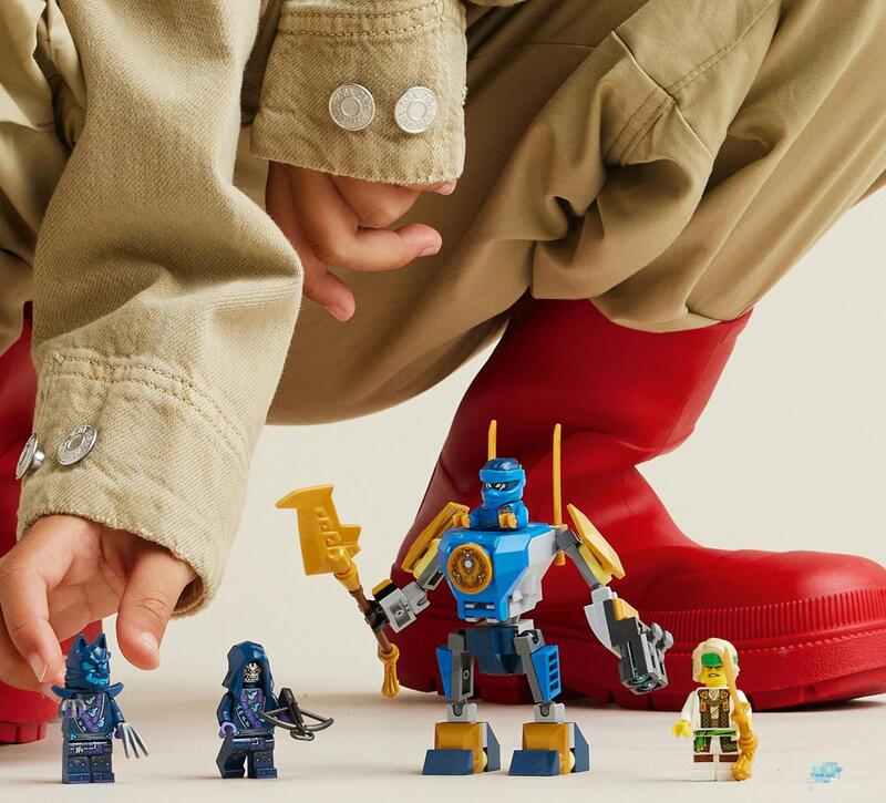 Chlapci a dievčatá od 6 rokov si môžu zinscenovať akčné súboje z 2. série televízneho seriálu NINJAGO® Dragons Rising s touto stavebnicou Bojový balíček Jayovho robota (71805). Táto nindžovská stavebnica obsahuje parádnu figúrku robota s polohovateľnými rukami, nohami a trupom, ktorý má v rukách veľký zlatý meč a môže odpaľovať projektily zo svojich 2 vystreľovačov.