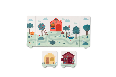 Dekorácie sú obojstranné, čo umožňuje vytvárať rôzne scény. Vďaka magnetickým tyčkám ožijú na pódiu 4 drevené postavičky.