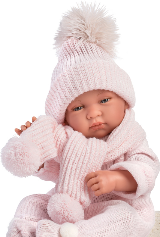 3dielne oblečenie s fleecovou ozdobnou dečkou s mašličkou pre bábiku bábätko NEW BORN Llorens veľkosti 43-44 cm