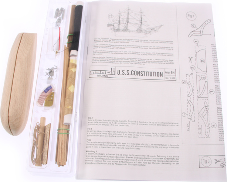Model lode U.S.S. Constitution, z radu Mini Mamoli, v mierke 1:330. Táto loď vážiaca 1556 ton a s posádkou čítajúcou až 468 členov, bola jednou z najsilnejších lodí svojej doby. Loď sa tiež nazývala "Old Ironside", pretože guľky nemohli preniknúť do trupu o hrúbke 7 palcov. Do roku 1881 bola U.S.S. Constitution v aktívnej službe. V súčasnosti je zakotvená v námornej loděnici v Bostone a slúži ako múzeum.