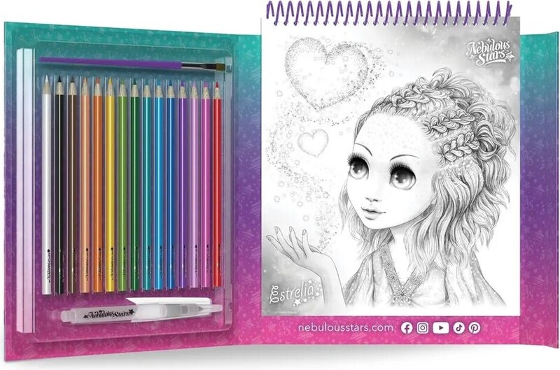 Pôvabné ručne kreslené ilustrácie čakajú na vyfarbenie pestrými farbičkami – detské omaľovánky Nebulous Stars Omaľovánky vodové fixky okúzlia každé dieťa prekrásnymi víliami a rozprávkovými motívmi. V sade je 15 vodových fixiek, štetec, doplniteľný štetec pre vodové farby, príbeh a návod.