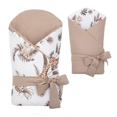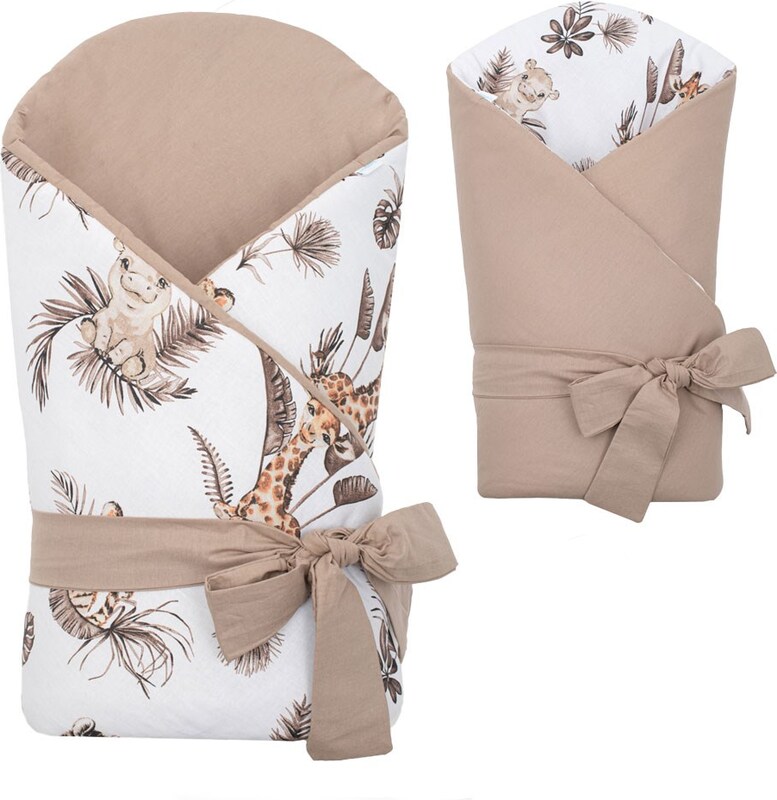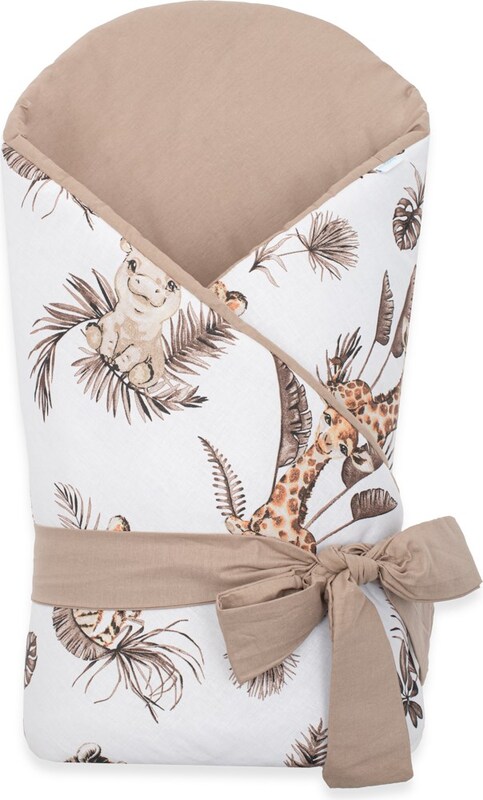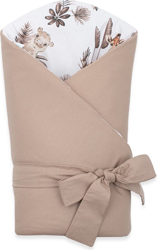 Nádherná detská obojstranná zavinovačka New Baby Safari pre bábätká. Zavinovačka je vyrobená z kvalitného a jemného materiálu, ktorý zaručí vášmu bábätku príjemné teplo. Výplň je až 3 cm čo znamená, že zavinovačka je vhodná aj na chladnejšie dni a je dostatočne pevná. Krásny detský motív, polahodí detským očičkám. Zapínanie na suchý zips aj stuhu na zaviazanie na mašľu.