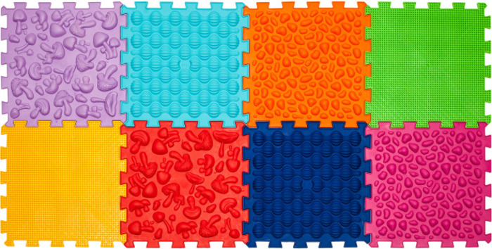 Masážna podložka sa skladá zo 8 dielikov a je vyrobená z hygienického, hypoalergénneho materiálu na báze PVC.