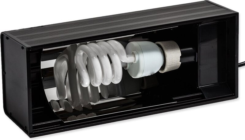 Kvalitne spracované osvetlenie pre terarijné žiarovky. Konštrukcia umožňuje horizontálne použitie žiaroviek, čo je ideálny variant pre UVB žiarovky, ktoré touto inštaláciou ponúkajú vyšší výkon UVB žiarenia. Pre výhrevné žiarovky je tento systém nevhodný, pretože sa v drtivej väčšine jedná o žiarovky s reflektorovým systémom a žiarovka by teda ohrievala iba vnútornú časť svetla a smerom dole by nemala takmer žiadnu účinnosť.
