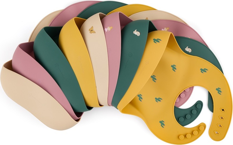 Je určený pre malé deti od 6 mesiacov, ktorým sa zavádzajú prvé príkrmy, a pre tie, ktoré sa už úspešne učia samostatne jesť. Má nastaviteľné zapínanie, ktoré umožňuje prispôsobiť ho veľkosti krku dieťaťa. To znamená, že podbradník rastie spolu s dieťatkom. Vďaka ergonomickému tvaru a mäkkému materiálu sa podbradník pohodlne nosí a neobmedzuje pohyb dieťaťa pri jedení. Dá sa tiež zrolovať, a preto nezaberá veľa miesta v taške, keď idete na prechádzku alebo na výlet.