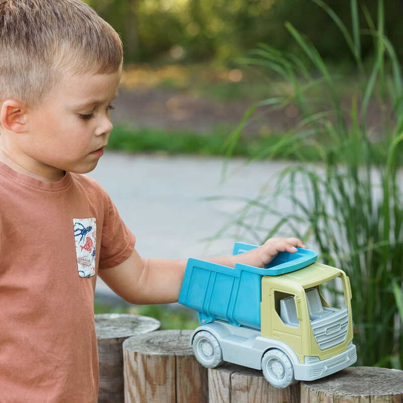 - Všetky prvky auta sú vyrobené výhradne z kvalitných surovín získaných zo spotrebného plastového odpadu, v uzavretom procese recyklácie s využitím najnovších technológií a vyznačujú sa odolnosťou voči poveternostným vplyvom, vďaka čomu bude hračka perfektne plniť svoj účel aj na pláži, doma alebo na pieskovisku.