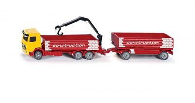 Kamión na prepravu stavebných materiálov s prívesom je detailne prepracovaná kópia v mierke 1:87. Kabína Mercedesu-Benz Arocs na dlhom podvozku s valníkom a žeriavom plus dvoma prívesmi s nápravami s valníkom.Toto typické motorové vozidlo je určené na stavby všetkého druhu, kam dováža potrebné materiály na stavbu v SIKU svete. Vďaka pohyblivému žeriavu nemá žiadny problém s odovzdaním nákladu na traktor alebo príves. Vďaka silnému háku je možné pripojiť a naložiť mnoho rôznorodých materiálov.