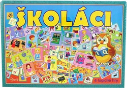 Súbor náučno-logických spoločenských hier ŠKOLÁCI obsahuje súčasti pre štyri základné hry. Pomocou týchto hier získajú deti veselým a hravým spôsobom niektoré poznatky a informácie o rôznych veciach a činnostiach súvisiacich so školou. Hry rozšíria deťom vedomosti, logický úsudok a myslenie.128 ks obrázkových kartónových kariet