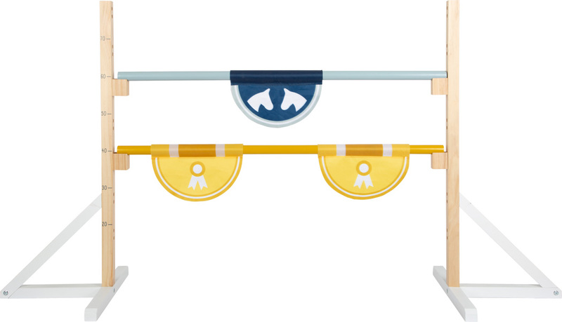 Hra na "kone" a skákanie cez prekážky s hobby koňom sú obľúbenou zábavou všetkých vekových kategórií! A rovnako ako u skutočných prekážok, tyč pri dopade počas skoku spadne! Dva držiaky na tyč sú z oboch strán potlačené výškovými mierami a vďaka základniam z masívneho dreva stoja stabilne.