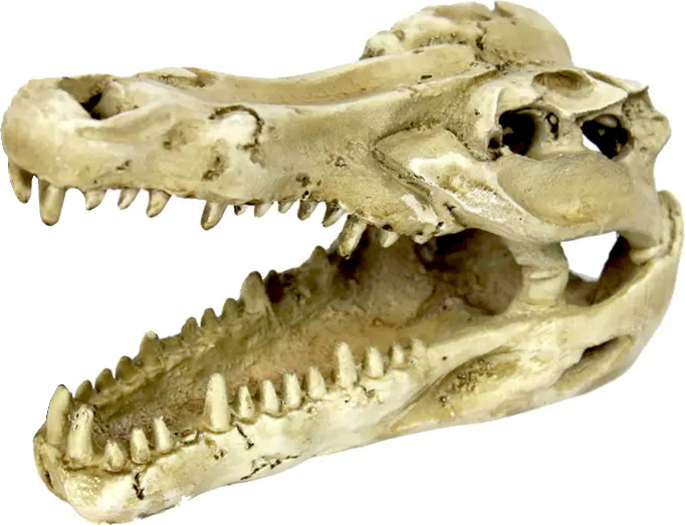 Tematická dekorácia terária "Krokodília lebka" je vkusným doplnkom k usporiadaniu všetkých terárií. Použitie dekorácií, či už umelých alebo živých, prispieva k spokojnému životu teráriových zvierat spestrením prostredia. Dekorácia je vyrobená zo zdravotne neškodnej živice a netoxických farieb. Neobsahuje žiadne ostré hrany a je absolútne bezpečná pre všetky druhy zvierat.